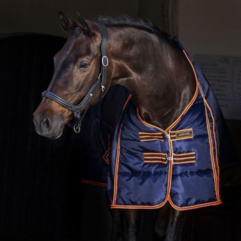 Derka stajenna HS PRO, do której wykonania wybrano tkaninę poliestrową 210D, materiał który jest zarówno miękki i bardzo trwały. Dzięki wypełnieniu Poly-Fill 220g, derka gwarantuje świetne utrzymanie ciepła nawet w chłodniejsze dni. Z przodu derka zapinana na dwie solidne klamry na pasach. Szeroka klapa nad ogonem. Zapinana pod brzuchem na dwa elastyczne pasy, które sprawiają że derka pozostaje na swoim miejscu podczas ruchu. Dla lepszego dopasowania - dwa kliny na wysokości łopatek. Kołnierz z miękką i przyjemną w dotyku wyściółką.