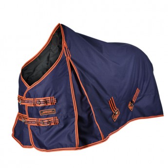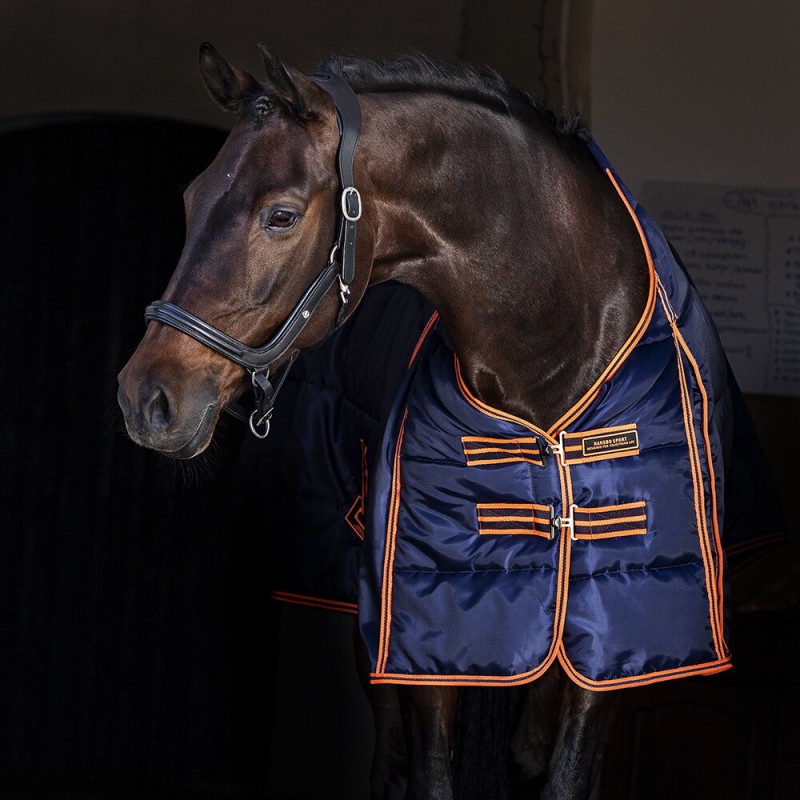 Derka zimowa Hansbo Sport PRO wykonana z wysoko gatunkowego materiału Rip-Stop 600D. Wszystkie szwy derki są podklejone specjalną, uszczelniającą taśmą, dzięki czemu derka zapewnia jeszcze większą ochronę. Derka została wypełniona ciepła i mięciutką warstwą z pollyfil'u o gramaturze 300g. Podszewka derki wykonana, z miękkiej i przyjemnej w dotyku tkaniny poliestrowej 70D. Wykorzystane w derce materiały w połączeniu z membraną 3000, zapewniają perfekcyjną oddychalność oraz wodoodporność i sprawiają, że derka Hansbo Sport PRO wyróżnia się na tle innych produktów. Z przodu derka zapinana jest na szeroki rzep oraz dwa pasy z klamrami, na brzuchu zapinana krzyżowo na dwa, regulowane pasy z klamrami. Te zapięcia w połączeniu z wysokim klinem na łopatkach, oraz elastycznymi pasami na nogi, sprawiają że derka zawsze pozostaje na miejscu. do derki można dopiąć kaptur. Szeroka tylna klapa nad ogonem, dla większej ochrony przed deszczem.